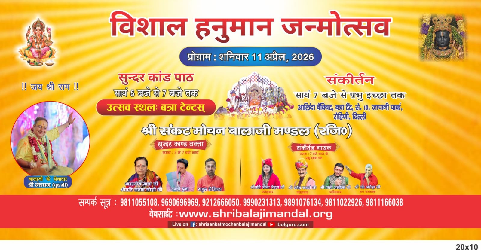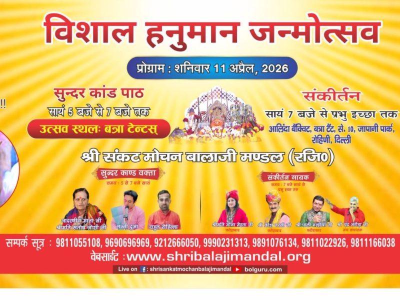 🔴Live विशाल हनुमान जन्मोत्सव ! विशाल हनुमान जन्मोत्सव 11 अप्रैल 2026 अलिंदा बैंक्विट बत्रा टेंट जापानी पार्क सेक्टर 10 रोहिणी दिल्ली आयोजन श्री संकट मोचन